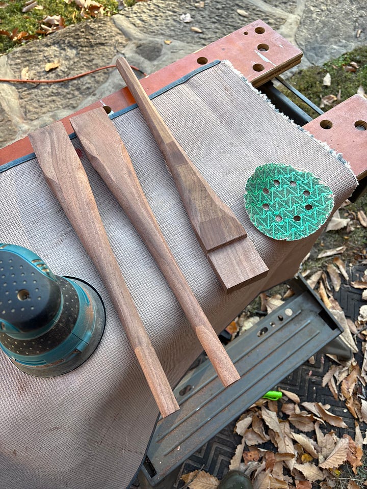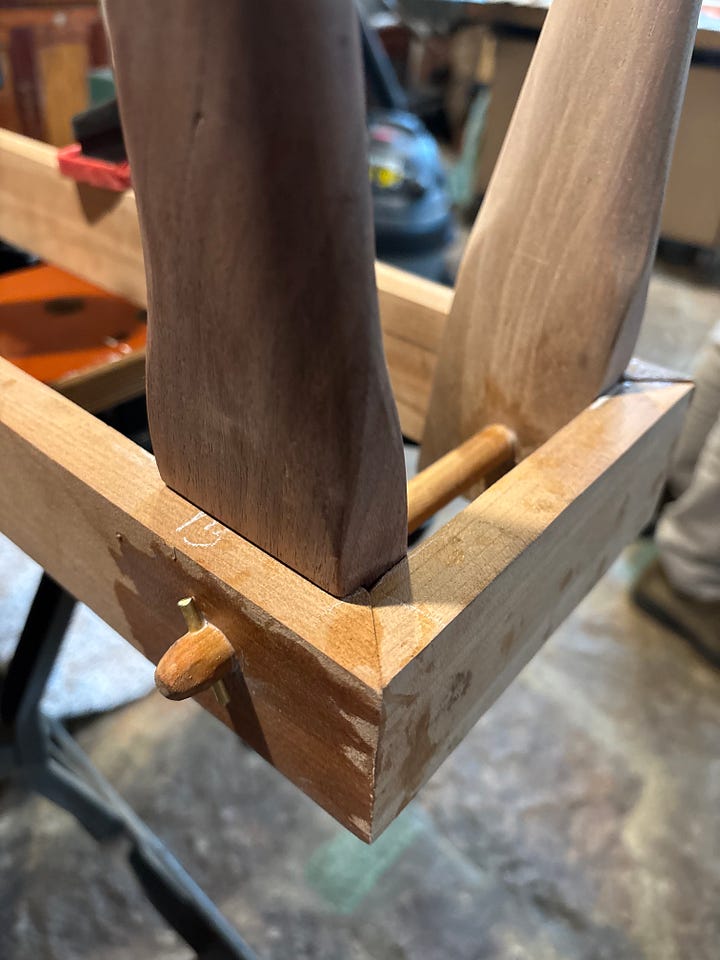 I shaped the legs by hand. I built a poplar supporting base. I put through dowels with little brass pins in them that absolutely nobody will ever notice or care about except me. I spent hours on the finish. Every time I came home from the shop, Anna would ask with a smile, “you almost done yet?” This happened many times.