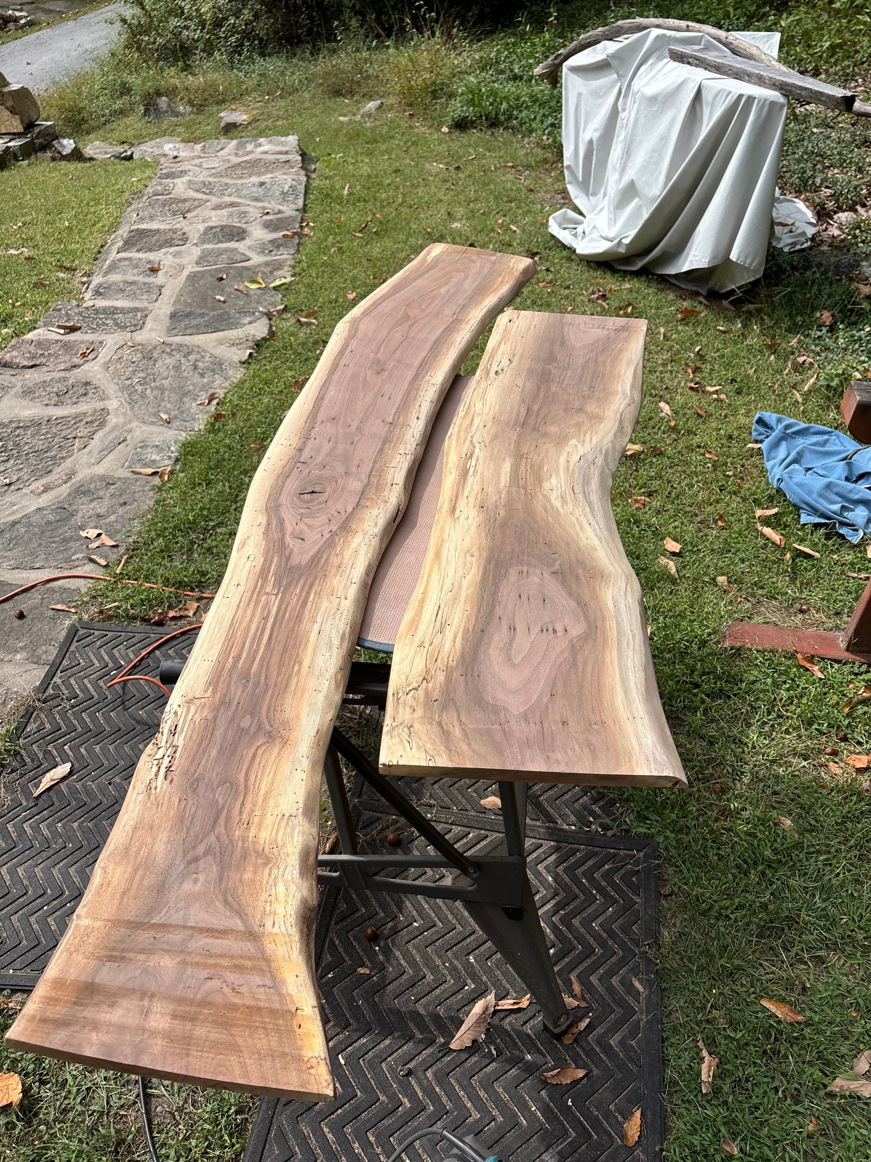 I have two walnut planks from my dad’s backyard. The tree came down years ago and my dad had it milled. They’ve been sitting around waiting for me to do something with them. Which meant they couldn’t just be shelves.